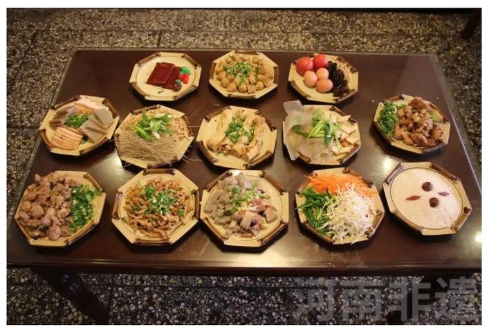 禹州十三碗,听名字就透着讲究。十三道菜,既有红烧狮子头、扒鸡、焖肉这样的硬菜,也有素什锦、炒豆腐、蒜泥茄子等家常小菜,荤素搭配,讲究口感层次,每道菜都是一方风味的极致表达。据传,这十三碗最早源于明清时期的官府宴席,后来逐渐流入民间,成为重要场合的宴客首选。